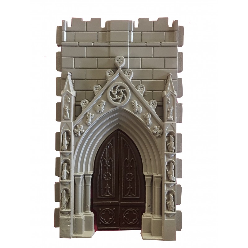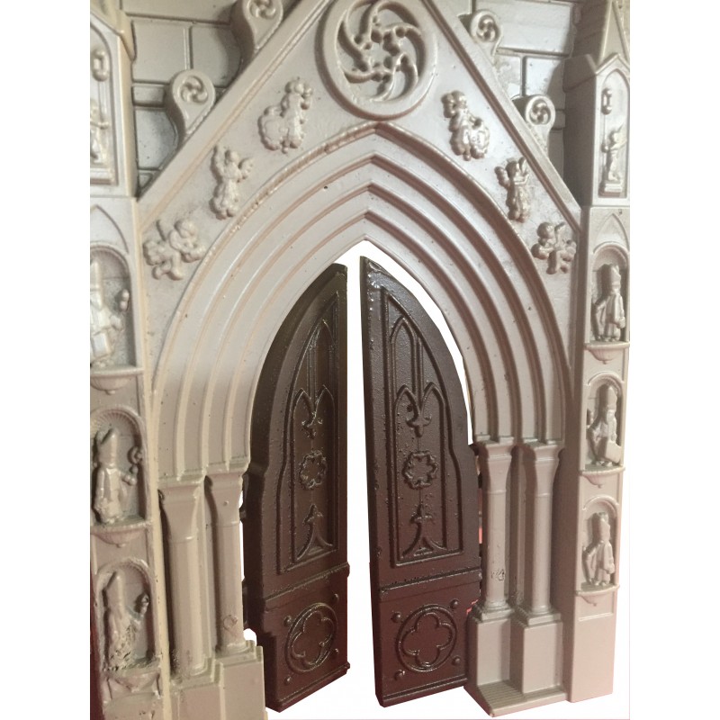 GOTHIC PORTAL 2 x 2 STECK COMPATIBLE zweispaltige ENTHALTEN drei Seiten mit BISCHOFSMOBIL HEADS auf jeder Seite. TÜR MIT SIX ANGELS Verzieren und ein Vordach. Aus Harzlösung gefärbt. Es ist ein Schlüsselelement Ihrer Kirche.