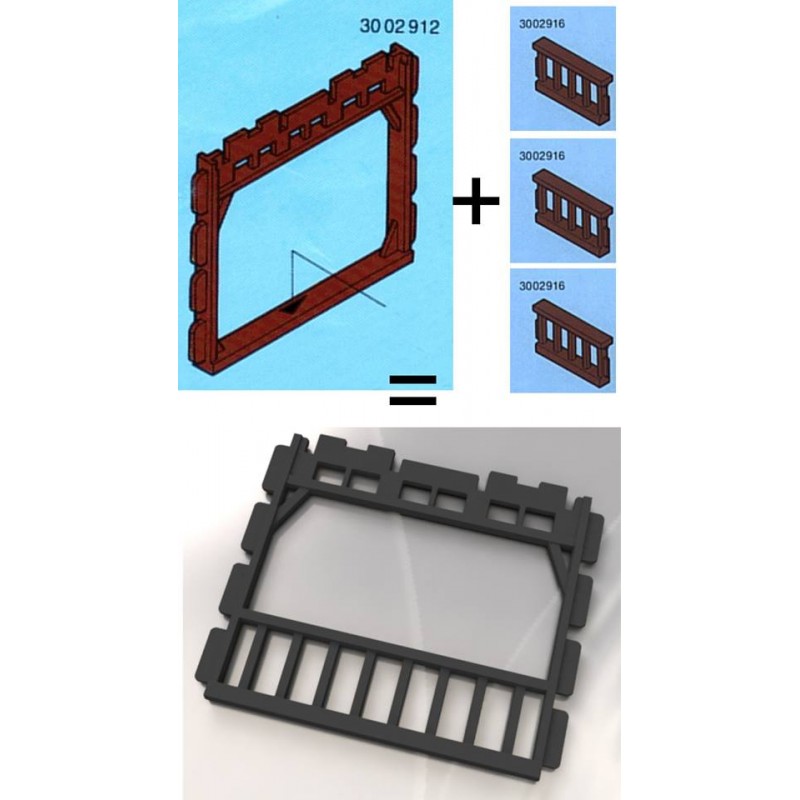 WOODEN FRAME WITH 2X1 FENCE IN BROWN COLOR. COMBINATION OF TWO PARTS ALREADY EXISTING (3002912 AND 3002916). MADE IN RESIN OF GREAT RESISTANCE AND TINTED IN MASS OF COLOR BROWN.