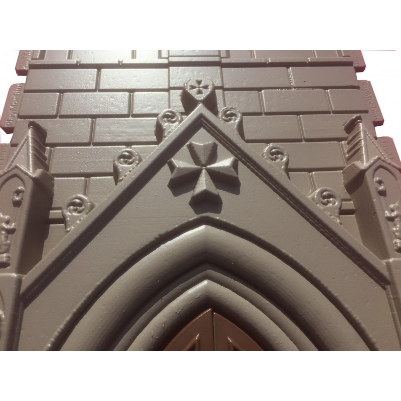 Kerkdeur met Templar-kruis. 2x2 maat steck is een stuk gemaakt van hars en hoge sterkte. Het omvat de deuren die kunnen worden geopend en worden bevestigd door twee haken aan de achterkant van het stuk.